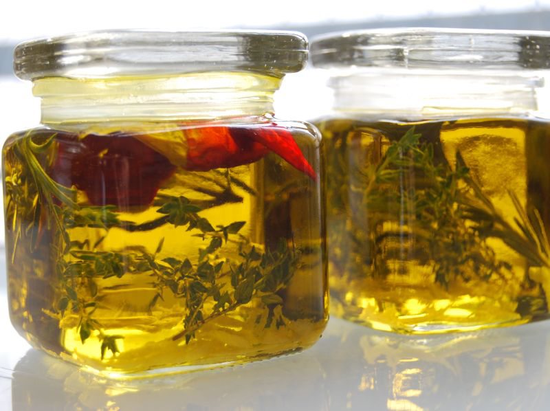 - In dekorative Flaschen Zesten, sowie Rosmarin- und Thymianzweige füllen und mit 300 ml hochwertigem Olivenöl aufgießen und die Flaschen gut verschließen.